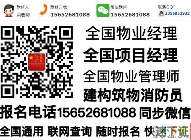 1、物业管理从业人员上岗必备之证 2、注册新物业公司必备之证 3、物业公司年审,申请或升资质时必备之证 4、物业公司项目投标必备之证 5、满足房管局检查的必备之证来源www.xbaixing.com